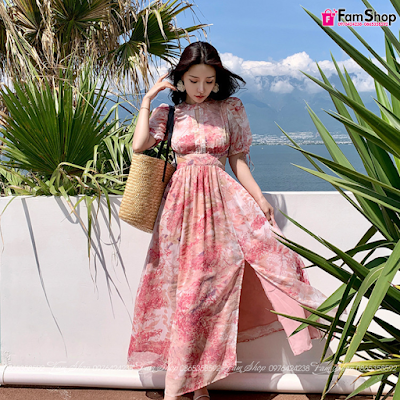 Váy maxi đi biển hồng VMXH680: